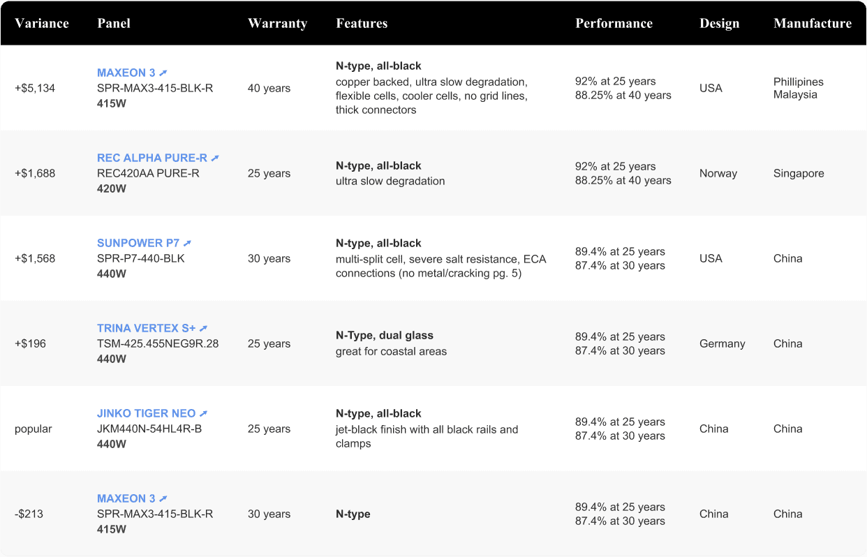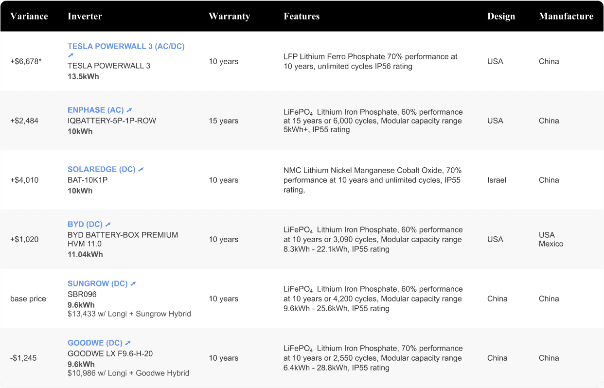 Cost variance on 9.6kWh-13.5kWh storage capacity
